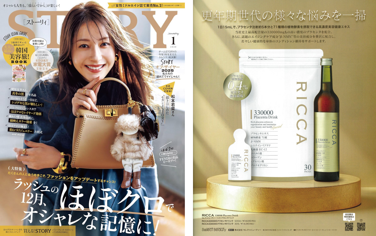 「RICCA 330000 プラセンタドリンク」がSTORY 2026年1月号(12月1日発売)に掲載されました。